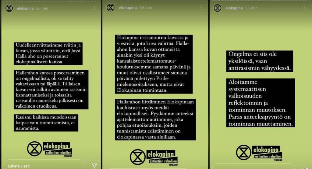 (Ohisalo antaa tukensa Elokapinalle, ajassa 9.05-11.15 selkeimmin)