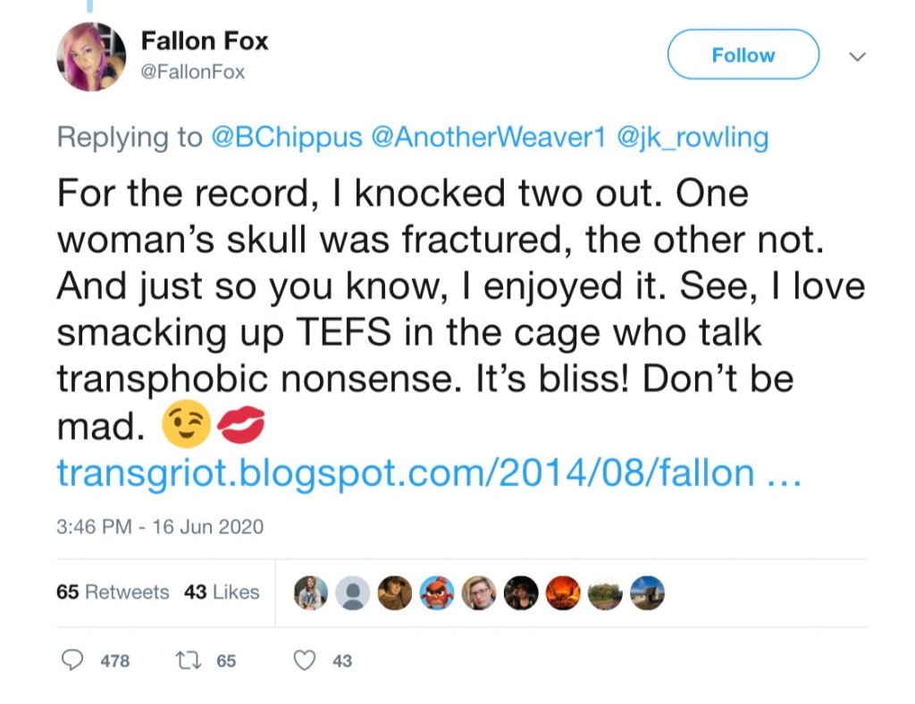 Sen sijaan, että vasemmisto näyttävästi irtisanoutuisi “väärin ajatteleviin” kohdistuvista väkivaltafantasioista, jakaa moni tunnettu vasemmistolainen yhä kyseisen anonyymin tilin sisältöä. Näin tilille annetaan selkääntaputus. Ehkä vastalahjana tilin antamasta tuesta puolueen puheenjohtajalle.
