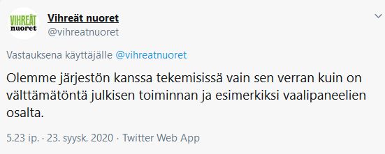 Yllä olevan vihreille tyypillisen ulostulon jälkeen, nähtiin vain päivää myöhemmin paljon populistisempi twiittaus: